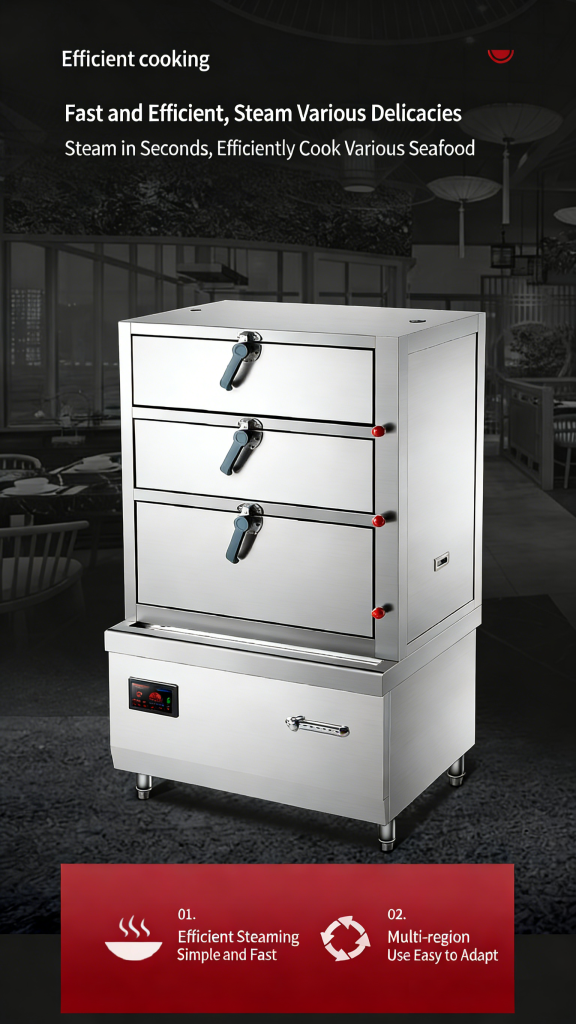 Three-door seafood steamer